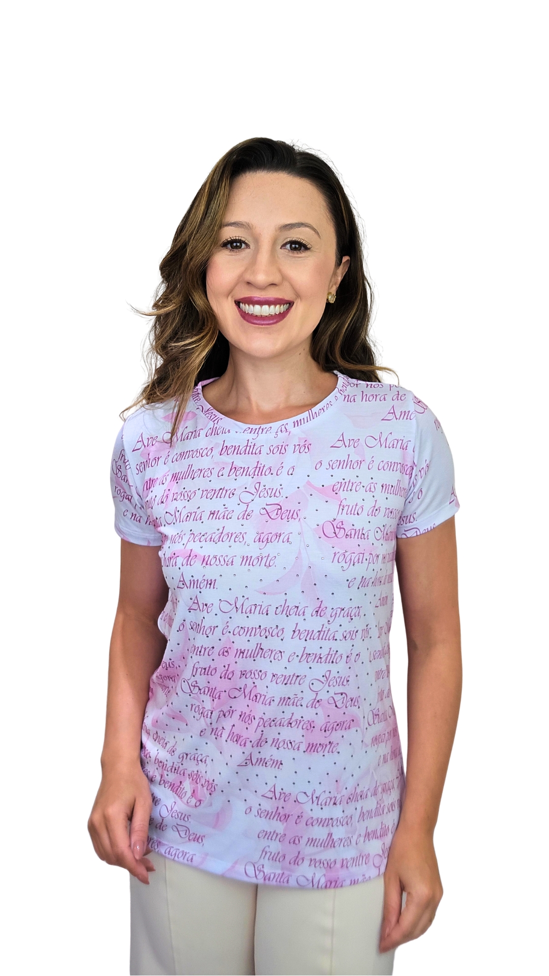Ideal para o dia a dia, encontros da comunidade, eventos religiosos ou momentos de oração, a camiseta Fontemell une moda e fé em uma única peça.