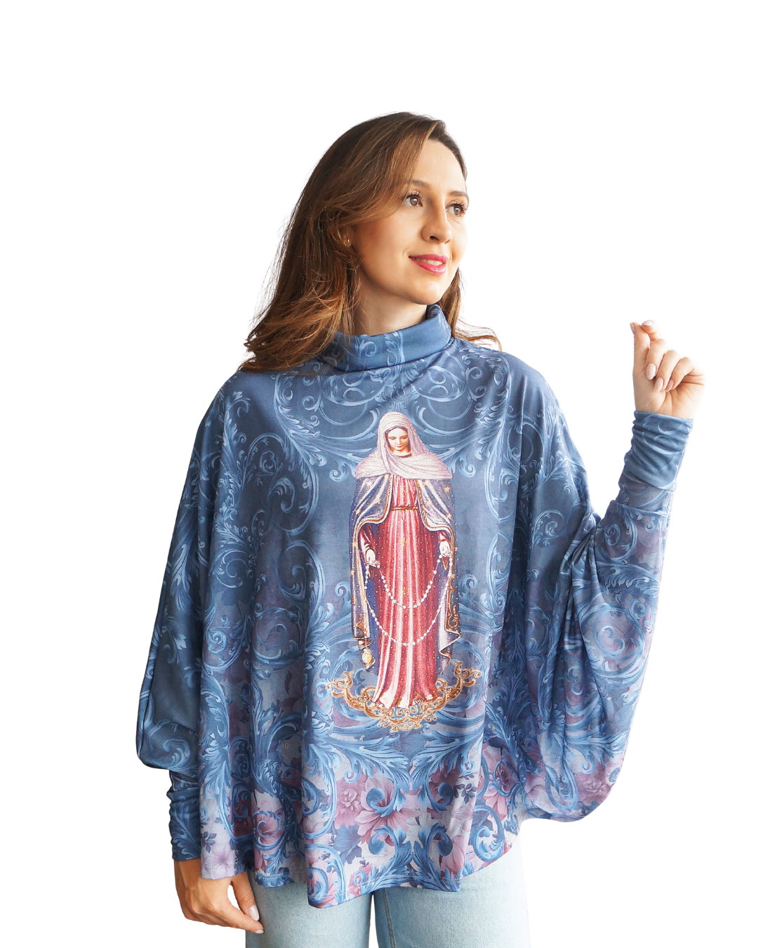 Envolva-se em fé, estilo e conforto. Desenvolvido com modelagem ampla e caimento elegante, essa peça celebra a devoção mariana de forma moderna e acolhedora.