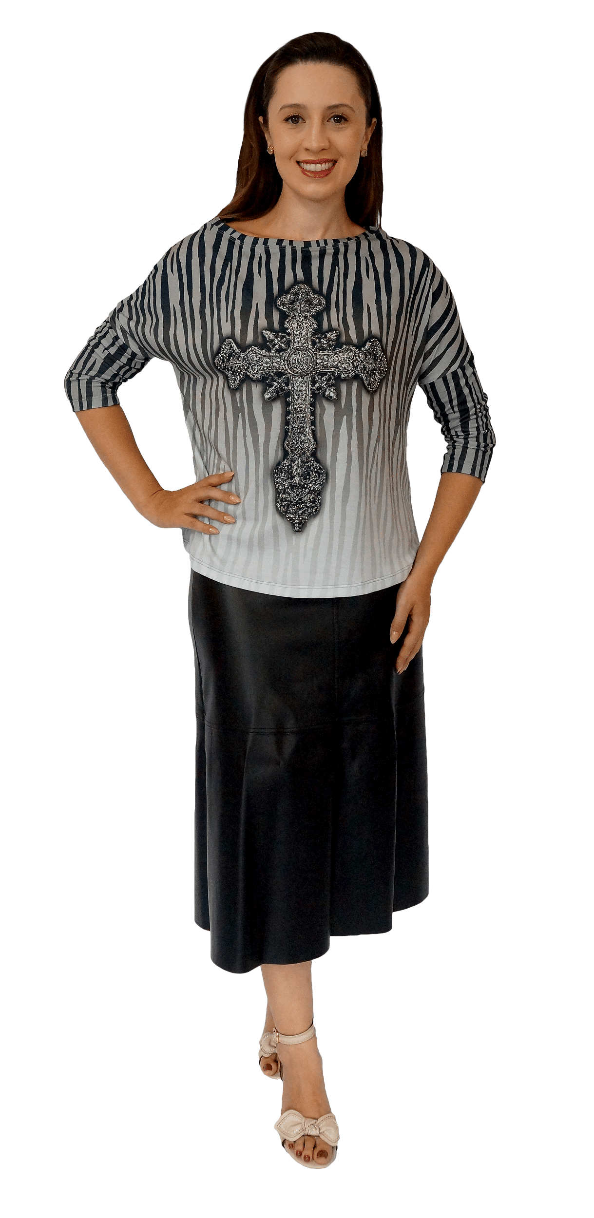 Esta Bata quadrada combina elegância e fé, oferecendo um design sofisticado inspirado na moda católica. Com sua modelagem princesa, ela valoriza o estilo feminino com um toque delicado e refinado.